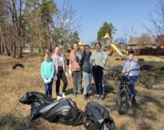 Волонтёры Юхновского района присоединились к Международному субботнику и привели в порядок детскую и спортивную площадки у начальной школы