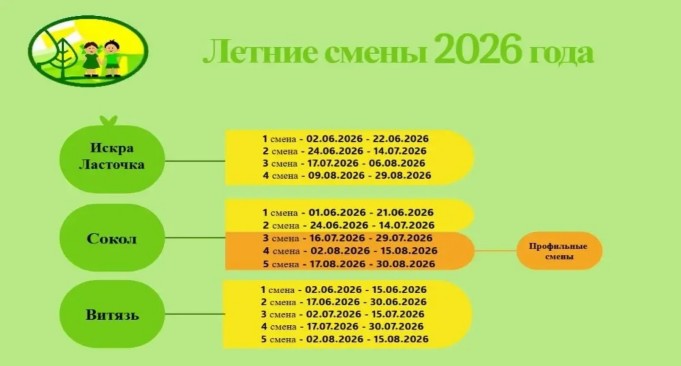 Представляем вашему вниманию расписание летних смен на 2026 год!